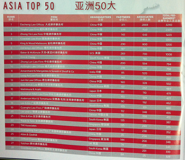 2013年度ALB亚洲律所规模50强排名